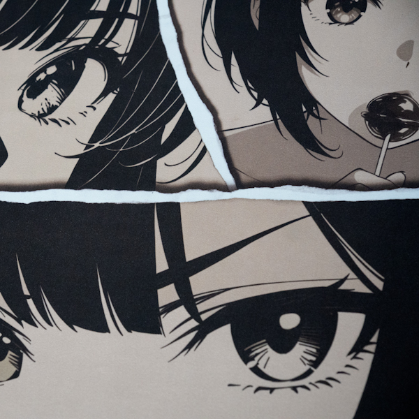 Aesthetic Manga Design: High-contrast comic panels with expressive anime eye artwork.