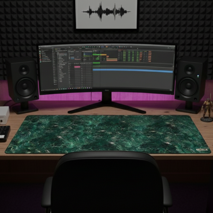 Measuring 36 inches by 18 inches, this mat anchors your peripherals with ease. The deep green tones create a calming environment that reduces visual fatigue during long sessions, while still making your keyboard and mouse stand out. Whether you’re a creative professional working in a studio or a gamer looking for a unique, nature-inspired aesthetic, the Verdant Void provides the perfect surface for your grind.